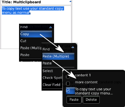 Check out our this application for BlackBerry devices: Multiclipboard: